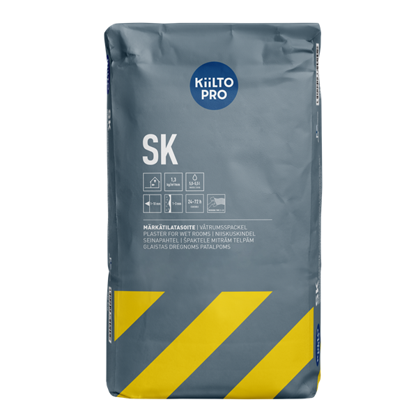 Kiilto SK on pohjatasoite sekä sisäseinä- ja kattopinnoille. Soveltuu erilaisten kiviainespintojen sekä kipsikartonkilevyjen tasoittamiseen. Valmis tasoitepinta voidaan laatoittaa tai käsitellä Kiillon vedeneristeillä. Se voidaan tarvittaessa myös ylitasoittaa muilla Kiilto seinätasoitteilla käyttökohteesta riippuen. Ulkokäytössä tasoite on pinnoitettava.