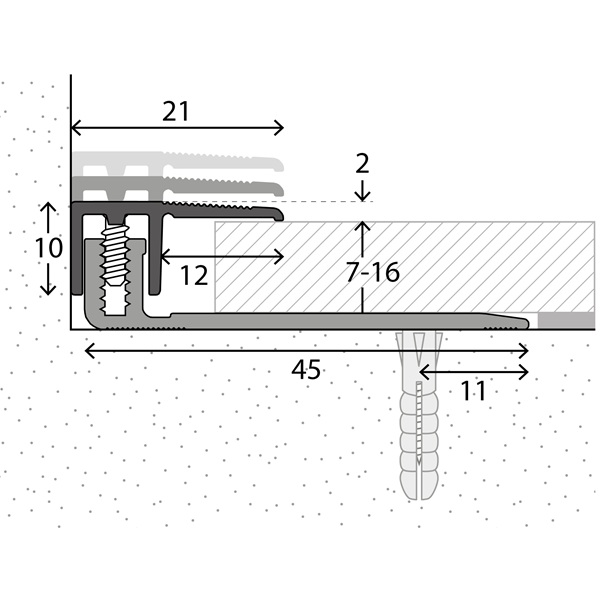 PRINZ 232 LPS 220 PÄÄTELISTA 21MM 7-16MM ALU 2,7M